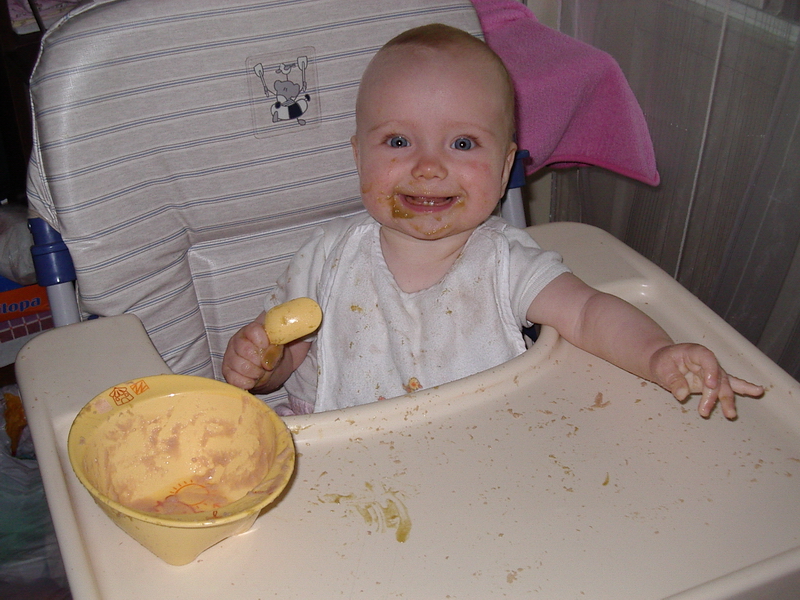 Еда размазана и по столу и по мне, кайф.