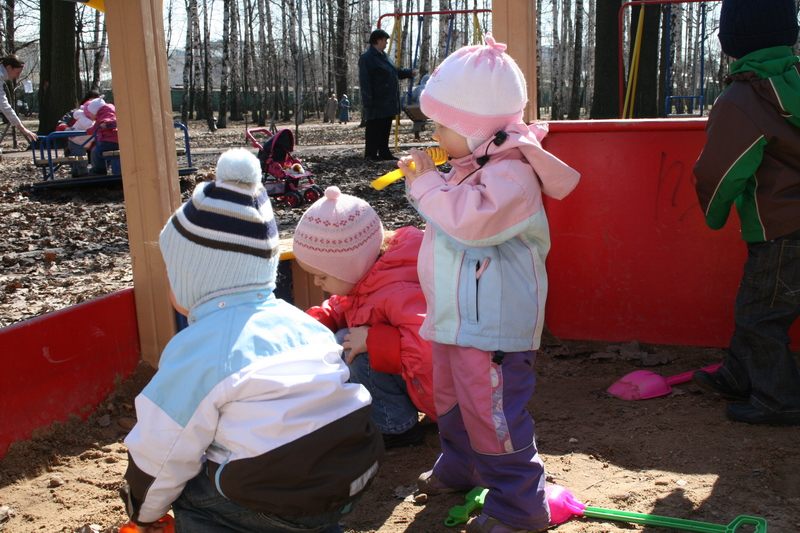 Песочница. Аня зачем-то ест грабли :)