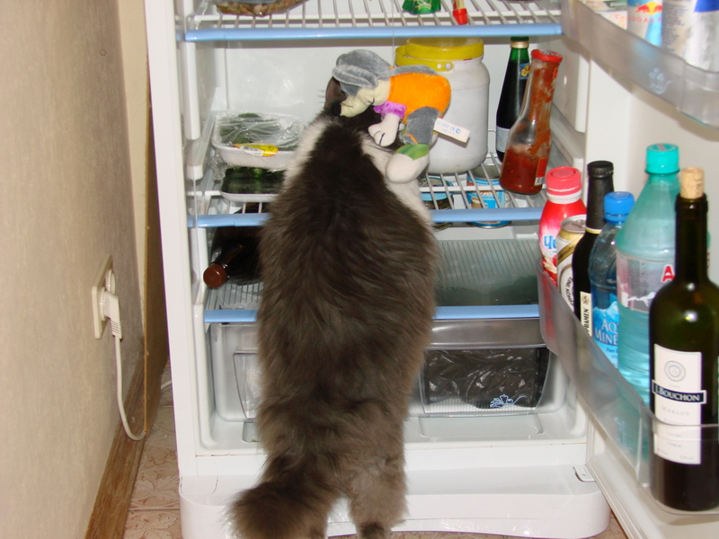 Мурза наводит порядок в холодильнике.