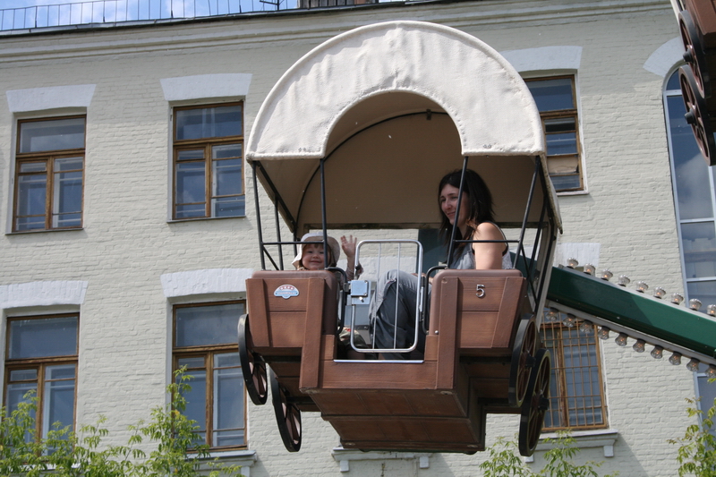 Оля с Соней на колесе обозрения.